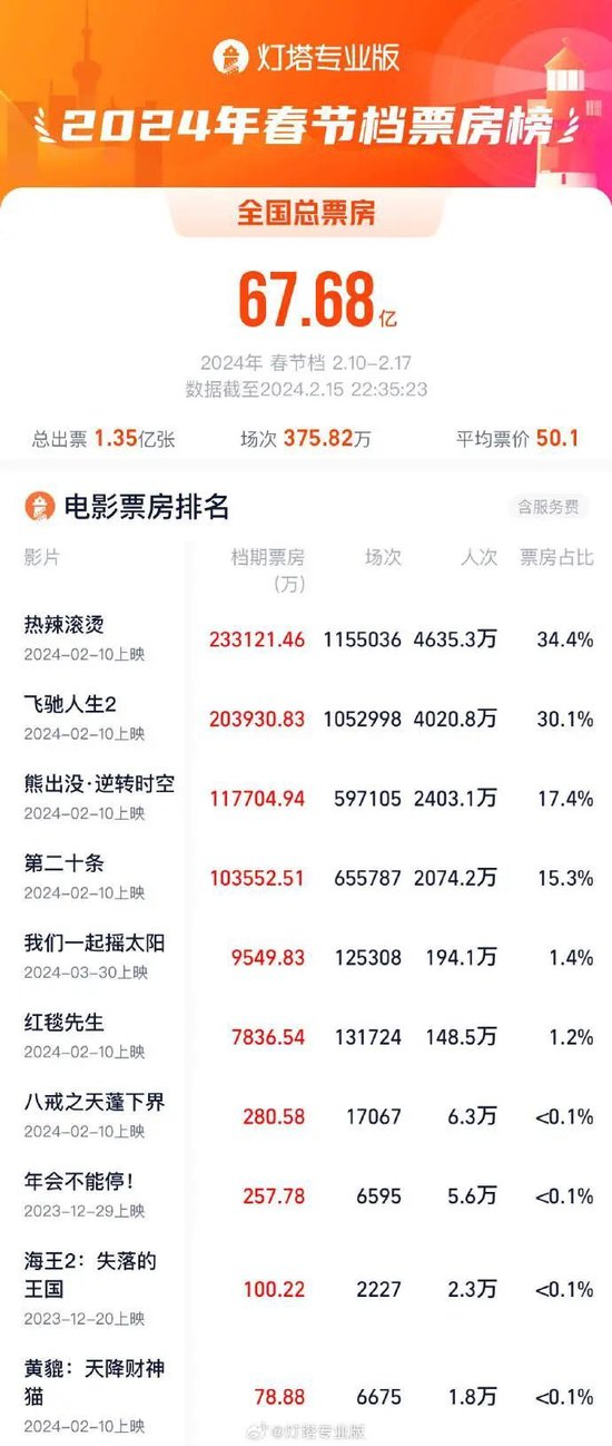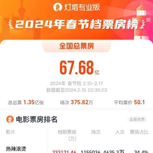 2024春节档票房67.68亿!超过去年了!