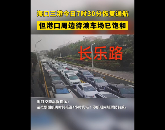 另据微信公众号“海南发布”消息,2月16日8时20分,海口市交通运输和港航管理局发布通告称,大雾影响减弱,海口新海港、铁路南港2月16日7时恢复通航,秀英港于16日8时恢复通航。已购买16日船票的司机旅客,停航期间船票仍有效,港口周边待渡车场已饱和,请按票面航班时间推迟5小时到港。过海车辆请服从现场交警和工作人员指挥。截至2月16日8时,当日预约出岛小车总数约18000辆,已出岛约3700辆,待出岛约14300辆。