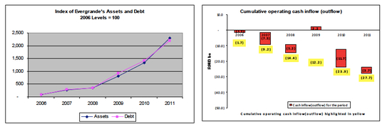 2011年10月,中国财政部在审计恒大2009年年报时发现,恒大未将旗下57家子公司并表,提供了不准确的资产信息,高估了成本和递延所得税。香橼认为财政部发现了冰山一角,而恒大的独立会计师普华永道却对恒大财报出具了无保留意见的审计报告(意为审计完全通过,没有任何问题)。