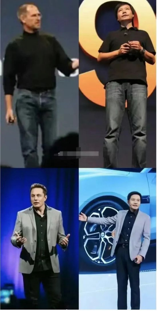 “比如发布手机时,就穿得和乔布斯一样,一直穿着牛仔裤。后来小米越做越大,他才开始穿西服。”