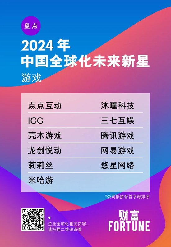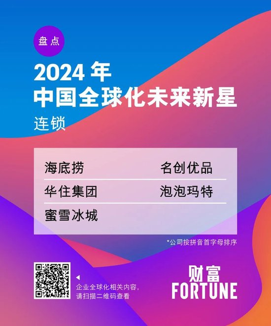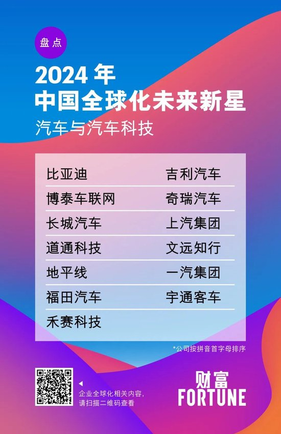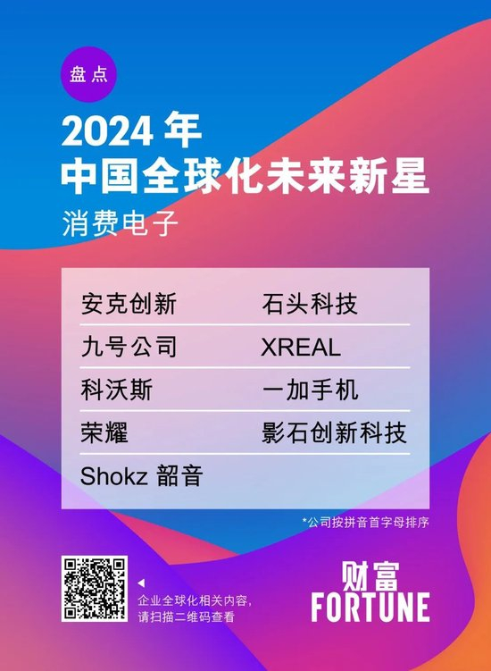 基于此,继“2023年值得关注的中国出海主力”盘点之后,今年,《财富》推出“中国全球化未来新星”年度盘点,旨在挖掘那些真正有潜力成为未来全球化巨头的新兴企业。未来十年,这些企业中的佼佼者甚至有望跻身《财富》世界500强的行列。