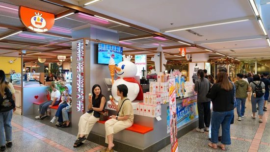 当地时间2024年2月14日,泰国曼谷,一家商场里的中国餐饮品牌蜜雪冰城奶茶。图片来源:视觉中国