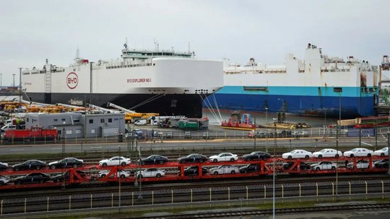 三千台比亚迪“开拓者1号”运抵欧洲。图片来源:视觉中国