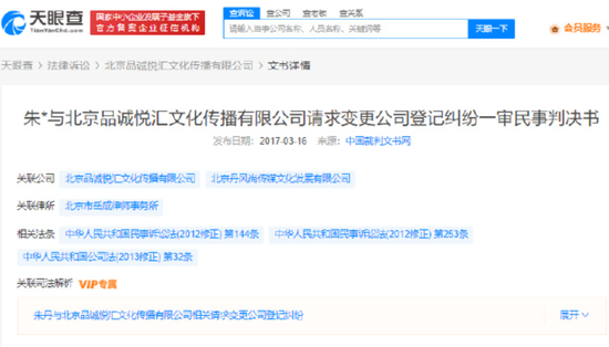 7月17日,据天眼查法律诉讼信息显示,近日,朱丹好友田笑蜜新增一则恢复执行信息,执行标的1611万余元,涉及朱丹与其相关合同、无因管理、不当得利案件,执行法院为北京市朝阳区人民法院。