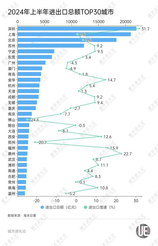 从“三驾马车”来看,上半年宁波外贸总额6811.4亿元,同比增长9.5%,规模再创历史新高,稳居全国城市第五。同期天津外贸总额4069.6亿元,同比增长1.3%,排在全国第12位。