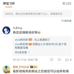 新浪科技发现,在社交媒体上,不少购买vivo X200 Pro的用户都反映该问题明显,并称影响到了用户体验,对此,vivo产品经理韩伯啸今日在网友评论区表示:“有方案的,马上公布,我们也在找下一步更完美方案。”(罗宁)