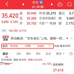 1月17日,京东美股盘前涨近6%;京东港股今日收涨4.71%,报收146.7港元/股。