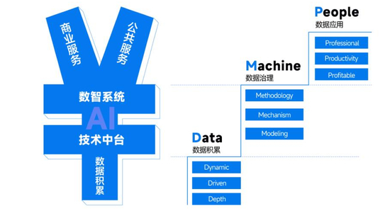 其实,每日互动是较早进入数据智能产业的一家杭州公司,最开始是为移动开发者提供手机推送解决方案,简称“个推SDK”。通俗来讲,就是为手机APP开发商提供用户推送服务。从2012年至今,每日互动在10多年发展中,数据智能业务不断迭代升级,已经形成“D-M-P”(Data-Machine-People)三层业务架构。