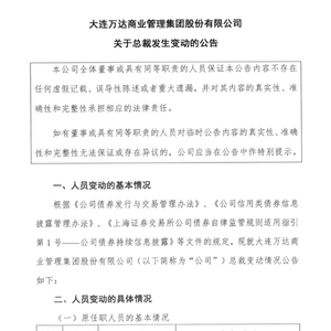 万达商管集团表示,此次人员变动为公司正常的人员变动,不会对公司日常管理、生产经营及偿债能力产生不利影响;变更后公司治理结构符合公司法和公司章程规定。