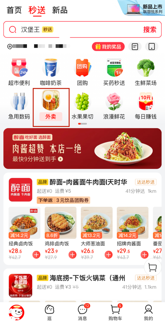去年,京东App正式上线“秒送”频道,除了超市便利、买药秒送外,还设置了外卖入口。此后,咖啡、奶茶、品牌连锁餐饮等品类相继上线。