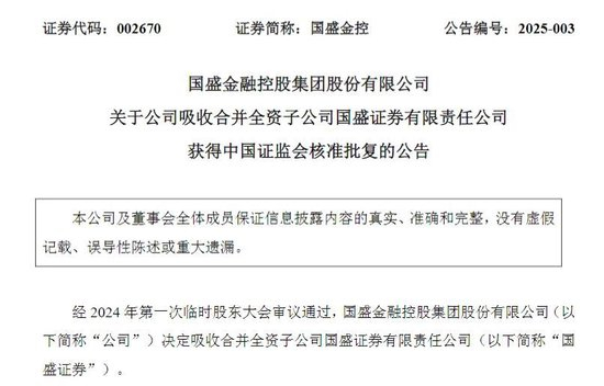 获批了!国盛金控吸收合并国盛证券