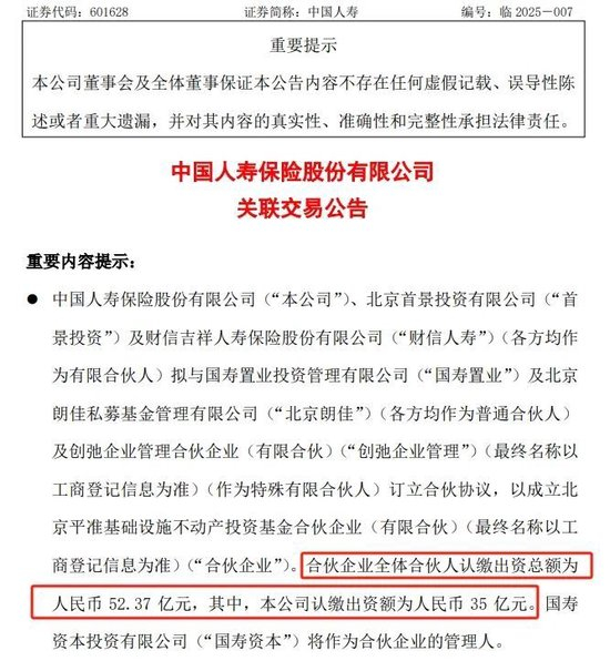 近日,中国人寿公告与关联方设立北京平准基础设施不动产投资基金合伙企业(有限合伙),一时成为市场关注焦点。