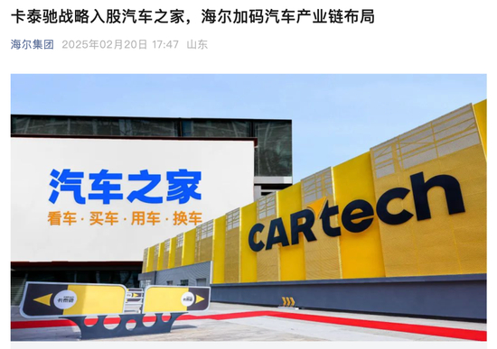 而海尔集团旗下子公司卡泰驰自2021年起已布局二手车市场,涵盖高端改装、充电技术、家车互联等领域,并通过并购美驰名车、罗伦士等公司扩大业务版图。此次收购汽车之家的主体也是卡泰驰控股。