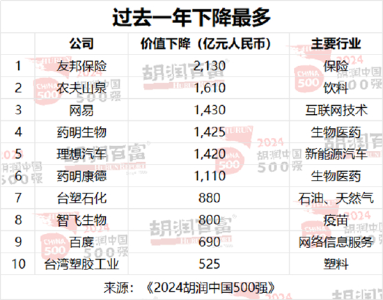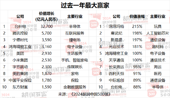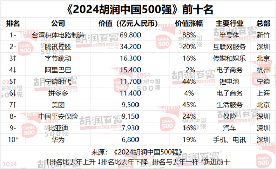 2024胡润中国500强发布:字节跳动价值上涨2300亿元,以1.63万亿元升至第三