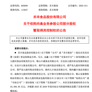 2月25日,禾丰股份发布公告称,拟以3.54亿元收购13家参股公司的部分股权,并取得控制权。