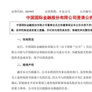 中金公司2月26日公告,关注到市场传闻称公司将与中国银河证券股份有限公司进行合并,现予以澄清说明。截至本公告披露日,公司未得到任何来自政府部门、监管机构或公司股东有关上述传闻的书面或口头的信息。控股股东不存在筹划上述传闻所称事项或其他涉及公司的应披露而未披露的重大事项。