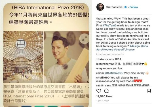 2017年,43岁的吴彦祖带着圆规和水平仪出现在浙江卫视《漂亮的房子》节目中。在改造安徽铜陵的一座危房时,原本节目组打算打造一个网红民宿,但他执意将收官之作“木兰坊”设计成了一座草原图书馆——用2000根原木搭建出悬挑结构,让内蒙古的星空通过玻璃穹顶洒在书架上。