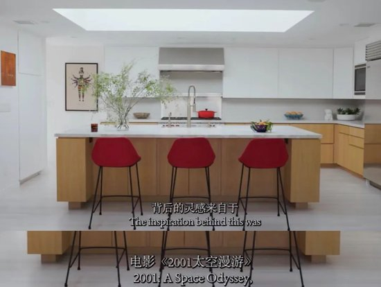 厨房岛台的设计同样别具匠心,其金属流线灵感来源于电影《2001太空漫游》。