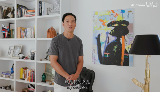 客厅的主墙上挂着他女儿9岁时画的抽象画,代替了传统的家庭照片。这幅画让他回想起女儿第一次握画笔的情景,他认为这“比任何肖像都更能表达真实”。