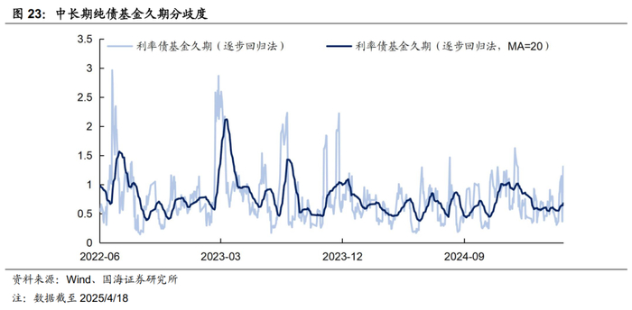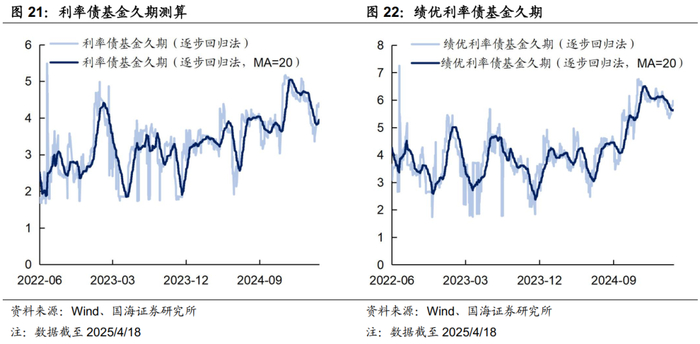 本周市场绩优利率债基金和一般利率债基金久期测算值分别为5.65和3.95,较上周分别增加0.02和0.11。