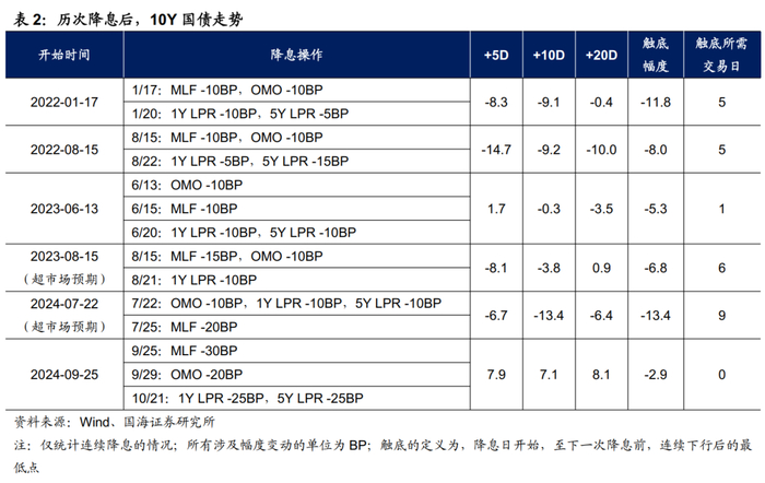 ④如果降息落地,之后的追涨空间也相对有限,反而会成为阶段性止盈的窗口。复盘近年来的历次降息,在前期降息交易较为充分的情况下,降息落地后,收益率往往出现迅速回调。特别是近年来随着债市交易速度、反应速度提升,利率债的追涨窗口期有缩短的趋势,有时甚至仅有1个交易日、或者降息当天就已经充分消化降息利多因素。只有在央行超市场预期降息时,收益率才会有相对更大幅度的下行,例如2023年8月和2024年7月。