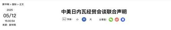 北京时间5月12日下午3时,A股收盘之后,《中美日内瓦经贸会谈联合声明》正式公布。中美双方承诺于5月14日前采取举措,同步调整关税税率。