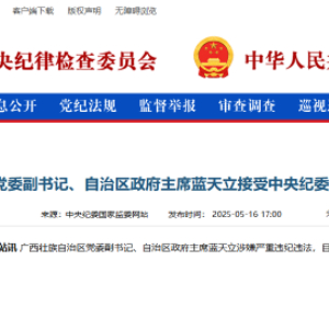 广西壮族自治区党委副书记、自治区政府主席蓝天立接受中央纪委国家监委纪律审查和监察调查