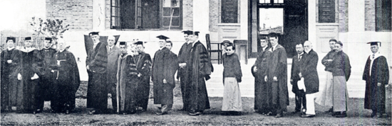江湾新校舍落成典礼,中外来宾鱼贯行进在奕住堂前