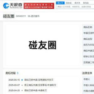 新浪科技讯 5月20日下午消息,天眼查财产线索信息显示,近日,支付宝(杭州)信息技术有限公司申请注册多枚“碰友圈”商标,国际分类为网站服务、通讯服务、金融物管等,当前商标状态均为等待实质审查。该公司成立于2016年7月,法定代表人为陈亮,注册资本1亿人民币,由蚂蚁科技集团股份有限公司全资持股。