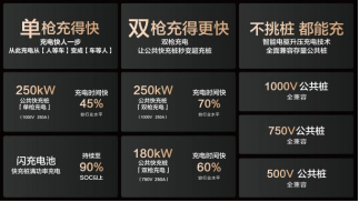 兆瓦闪充技术的突破性在于“全场景适配”。首创“智能升压”技术,搭载车辆可全面兼容现有公共快充桩,让用户充电不挑桩、桩桩都能充;在常见的单枪充电模式下,单枪充电时间较行业水平快45%,充电速度大幅提升;独创“双枪充电”技术,实现充电功率接近翻倍,让公共桩秒变超充桩,充电时间较行业水平快70%。
