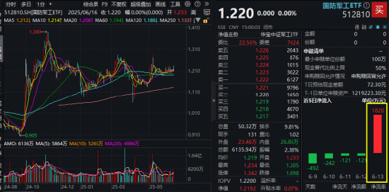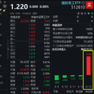 截至6月16日,国防军工ETF收盘价格1.220元,是全市场价格最高的国防军工类ETF,这为其实施拆分提供了前提条件。