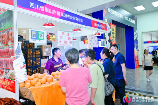 展会现场,四川眉山市禧美源农业有限公司展台旁排起了长队,该公司带来的冰糖橙迎来大量顾客争相购买。一位手提多件商品的长者在购买了50元的冰糖橙后对新浪财经表示,“我经常买橙子,尝了他们的觉得非常甜,就又买了”。