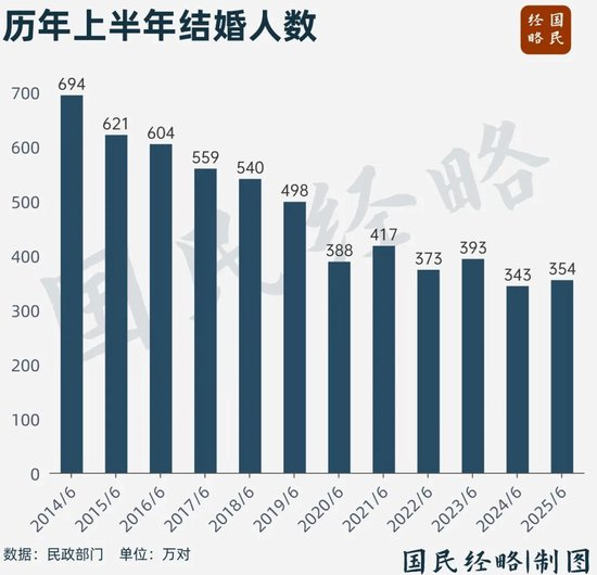 日前,民政部披露最新数据,2025年上半年结婚登记353.9万对,离婚人数133.1万对,分别增加10.9万对、5.7万对。