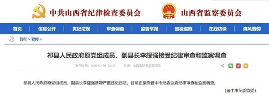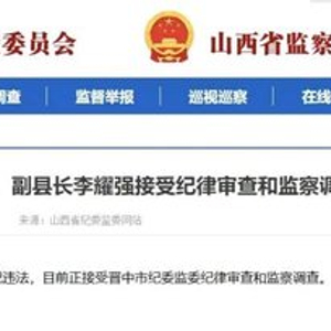 2月9日,山西省纪委监委官网“清廉山西”发布消息:祁县人民政府原党组成员、副县长李耀强涉嫌严重违纪违法,目前正接受晋中市纪委监委纪律审查和监察调查。这名曾长期在祁县担任要职的官员被查,已是祁县半年内第三名落马的县级干部。