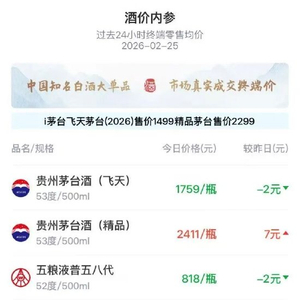 2月25日,有消息称,飞天茅台出厂价由1169元/瓶上调至1299元/瓶。茅台相关人士对新浪财经《酒业内参》表示:“不属实,此类消息以官方发布为准。”