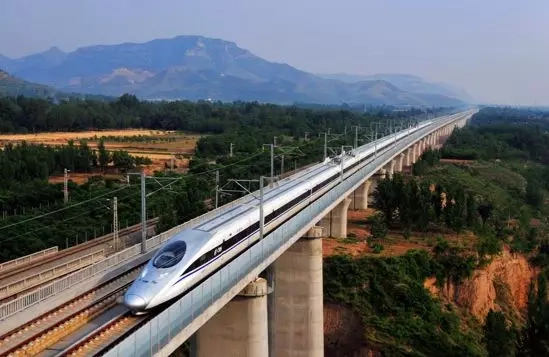 ▲中国中车研制的“复兴号”于2017年6月26日在京沪高铁正式双向首发,同年9月21日在京沪高铁率先实现350公里时速运营,我国成为世界上高铁商业运营速度最高的国家。