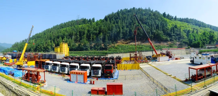 ▲根据现有地质资料和产能评价,涪陵页岩气田资源量2.1万亿方,是全球除北美之外最大的页岩气田。此次成功开采标志着中国成为继美国和加拿大之后第三个具备商业化开发页岩气能力的国家。图为2018年6月7日,涪陵页岩气田焦页21号西平台井工厂同步压裂施工现场。