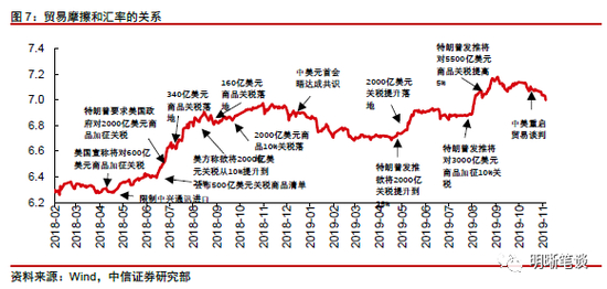 美元兑人民币汇率包含了市场对于未来中国经济增速和国际收支情况的预期,但是往往存在短期内反应过度的情况。美元兑人民币汇率包含了投资者对于中国未来经济状况以及国际收支的预期,每次特朗普推特宣称对中国加收关税,人民币都会大幅度贬值,但是实际上关税清单的落地往往是几个月之后,在关税落地前基本面并没有发生很大变化,这种贬值更多包含了投资者对于中国经济和国际收支未来恶化的预期,但是因为投资者的情绪波动以及关税落地后对于中国的影响多大缺乏定量的测量,往往存在短期内过度反应的情况。