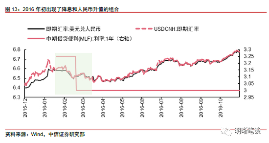 从历史上看降息+升值的组合,“8·11汇改”后仅仅在2016年一季度出现过降息+人民币升值的组合。从基本面角度看,2015年经济出席较大幅度下行,人民币汇率前期有急跌。货币政策方面,为稳增长央行推出降息+降准的宽松货币政策组合。汇率政策方面,从美元兑人民币中间价与即期汇率分离看央行有主动引导汇率对抗贬值预期,并注重引导市场将注意力转向货币篮子,同时央行开始大幅抽离离岸人民币以打击人民币空头,此外央行行长周小川发声表态不支持人民币贬值,此外美联储2016年3月降息预期落空导致美元贬值,多因素影响下人民币汇率出现升值。总体而言,2015年经济下行压力大导致了人民币汇率的快速下跌,而2016年初降息有出于稳增长的考虑,降息后人民币汇率贬值预期再起,央行通过相应的汇率政策来遏制人民币贬值预期,形成了降息+升值的组合。