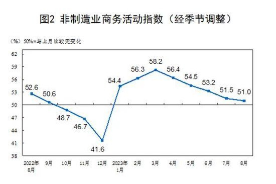 数据还显示,8月非制造业商务活动指数为51.0%,比7月下降0.5个百分点,但持续位于扩张区间。