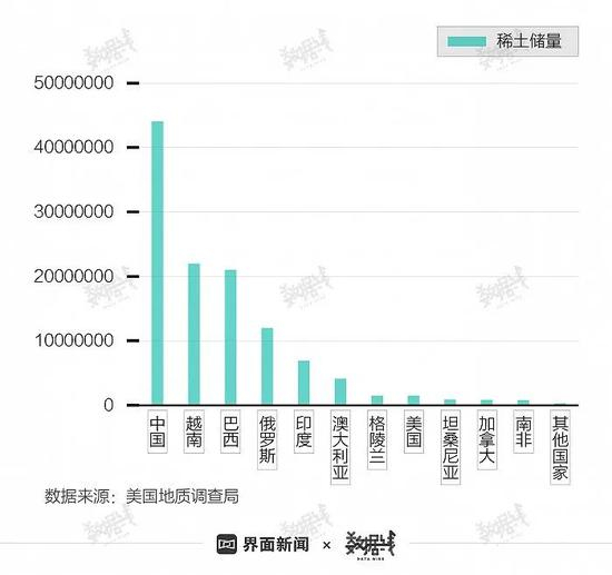 据美国地质调查局(USGS)最新数据显示,2020年,全球稀土储量为1.2亿吨,其中,中国储量为4400万吨,占比36.67%;其次是越南和巴西,储量分别为2200和2100万吨,占比分别为18.33和17.5%。