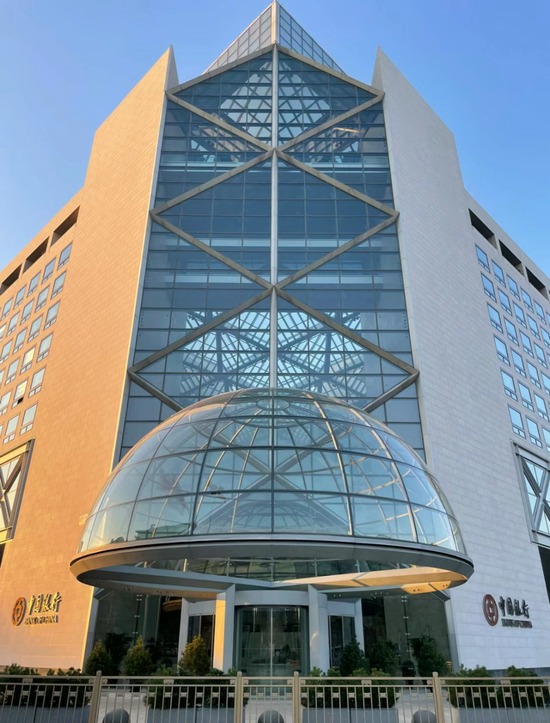 呈半圆弧形的主楼和圆柱体中央楼,藏风聚气,前有明堂——中国人民银行总部大楼,是繁华长安街上一道独特风景。