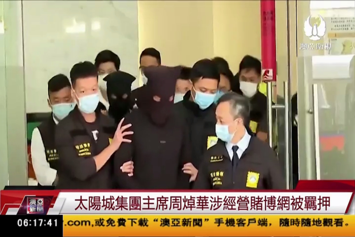 仅仅两天之后,澳门特区政府司法警察局就举行特别新闻发布会,证实已拘捕一犯罪集团的47岁周姓男子及其余10人。周焯华被捕后,澳门另一博彩中介龙头德晋集团实控人、明星安以轩丈夫陈荣炼也于今年初被澳门特区警方逮捕。