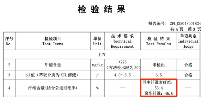 竹纤维含量足足有53.4%。