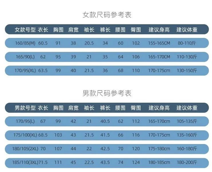 尺码也非常齐全,女生80~150斤,男生105~200斤的,都能穿。