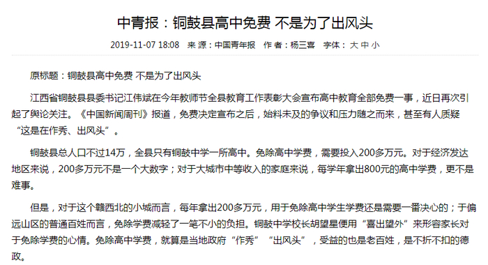但我更愿意,将其视为铜鼓县高中免学费政策结出的一颗硕果。
