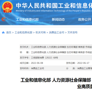 6月24日,工业和信息化部在京召开《关于推动轻工业高质量发展的指导意见》(以下简称《指导意见》)解读会。工业和信息化部党组成员、副部长王江平出席会议并讲话,消费品工业司司长何亚琼主持会议。20个省市工业和信息化主管部门、25家全国性行业协会在现场或以视频方式参加会议。中国酒业协会秘书长何勇参加会议并做交流发言。