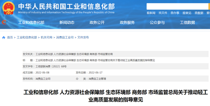 王江平副部长指出,轻工业是我国重要民生产业和传统优势产业,2021年以占全国13.4%的资产,实现全国工业16.9%的工业增加值、17.5%的营业收入和16.2%的利润总额,为国民经济和社会发展做出积极贡献。当前,我国经济由高速增长阶段转向高质量发展阶段,消费结构全面升级,需求结构加速调整。现阶段出台《指导意见》恰逢其时、十分必要,为轻工业高质量发展描绘蓝图、明确路径。