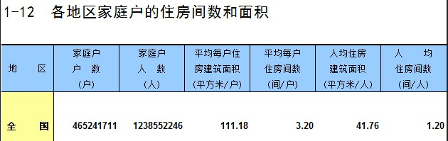 数据显示,中国家庭人均住房面积达到41.76平方米,平均每户居住面积111.18平方米。