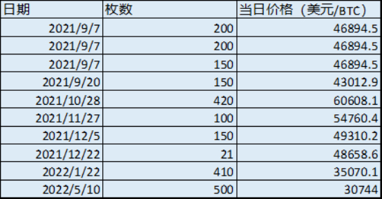 根据布克尔推文统计,2021年9月至2022年5月,萨尔瓦多政府先后购买了10笔比特币,共持有2301枚比特币,累计购买成本逾1.01亿美元。